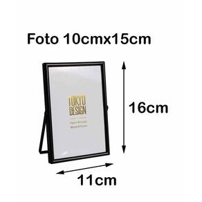 Porta retrato em metal e vidro para fotos de 10x15cm moldura Preta