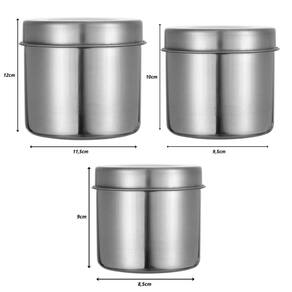 - 5 Potes em 5 tamanhos diferentes 12cm, 10cm, 9cm, 8cm e 7cm ;