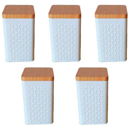 5 Porta-Mantimentos Lata Relevo 3D Quadrada.