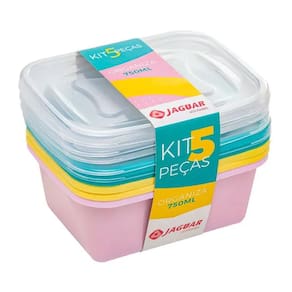 Kit 5 Potes Multiusos Organizadores com Tampa - 750ml - Conjunto de Pote Jaguar - 5pc Retangular 750ML Colorido - PANAMI