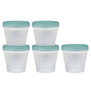 Cinco potes de 150 ml para armazenamento de papinha, leves e resistentes, fácil de lavar.
