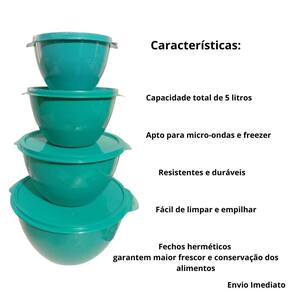Kit 5 Potes Plástico Redondo Tigela com Tampa Fecha Fácil Cor: Amarelo kit de 5 peças é uma escolha elegante e prática para sua cozinha. Cada tigela é feita em material resistente e durável, podendo ser utilizada em micro-ondas, freezer e lava-louças. O conjunto é perfeito para preparar, servir e armazenar alimentos, além de ser empilhável, economizando espaço na hora de guardar
