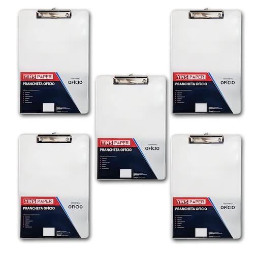 Kit 5 Prancheta Ofício Cristal Transparente Predendor Metal