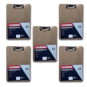 Kit 5 pranchetas de madeira a4 mdf predendor metal 31x22