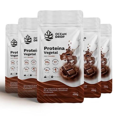 Kit 5 Proteína Vegetal Ocean Drop - 450g Sabor Chocolate Descrição: A Proteína Vegetal Ocean Drop é uma escolha vegana e de alta qualidade para quem busca uma fonte de proteína completa e natural. Formulada com uma combinação de proteína de ervilha e farinha de amêndoas, é enriquecida com vitaminas e minerais essenciais, oferecendo um sabor delicioso de chocolate. Benefícios: Fonte Completa de Proteína: Contém 21g de proteína por dose, incluindo todos os aminoácidos essenciais. Saúde Muscular: Ideal para fortalecer e reparar os músculos após o treino. Vitaminas e Minerais: Enriquecida com magnésio, zinco, niacina, ácido pantotênico, riboflavina, piridoxina, tiamina, folato e cobalamina. 100% Vegana: Feita sem ingredientes de origem animal. Sem Glúten e Lactose: Adequada para pessoas com restrições alimentares. Modo de Ingestão: Sugere-se a ingestão de 1 dosador aproximadamente 30g diluído em 200-300 ml de água, suco, leite vegetal ou bebida de sua preferência, preferencialmente após o treino ou conforme orientação de um de saúde. Ingredientes: Proteína de ervilha Farinha de amêndoas Cacau em pó para sabor chocolate Bisglicinato de magnésio Bisglicinato de zinco Niacinamida D-pantotenato de cálcio Riboflavina Cloridrato de piridoxina Cloridrato de tiamina L-metilfolato de cálcio Metilcobalamina Goma xantana espessante Glicosídeos de steviol edulcorante Aroma natural de chocolate Informações Adicionais: Não contém glúten Livre de lactose Produto 100% vegano Registro: Produto autorizado para comercialização em todo o território nacional conforme as normas da ANVISA. Marca: Não Informado