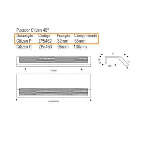 O puxador da Zen Design, traz para o seu projeto a leveza e design que ele precisa. A Zen entra no mercado com sua linha de puxadores que se preocupam por unir qualidade a inovação. Com o compromisso de valorizar a estética dos ambientes, a empresa disponibiliza modelos totalmente diferenciados e personalizados com relação ao que há no mercado. Marca: ZEN DESIGN Linha: Citizen 45 P Tipo: Embutir