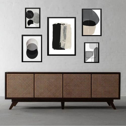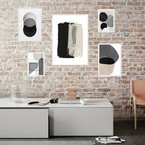 Kit 5 quadros abstratos cinza bege e preto - com vidro Moldura: madeira preta Informações do produto tire todas as suas dúvidas no descritivo abaixo: decoração para quarto, sala, cozinha, escritório, área gourmet e muito mais. Chega de paredes vazias medidas - kit composto por 5 quadros, sendo 2 quadros com medida 18x24cm, 2 quadros com 24x33cm e 1 quadro com medida 33x45cm. Material do papel - papel fotográfico brilhante de altíssima resolução acabamento - todos os quadros são acompanhados de vidro para proteção da imagem. - moldura em madeira maciça na cor preta ou branca conforme produto escolhido e pendurador . - os quadros são embalados de forma segura com plástico bolha com camada dupla de acordo com o tamanho dos quadros. Garantia - garantia de 3 meses. Meu quadro chegou. Como posso fixá-lo Você precisa apenas de um martelo e um prego, pois os quadros já vão acompanhados de penduradores. Esta é a forma mais indicada. Como posso limpar meu quadro A limpeza é feita como um móvel comum da sua casa. Apenas um pano seco ou espanador são suficientes para tal