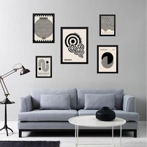 Kit 5 quadros bauhaus preto e branco - com vidro
