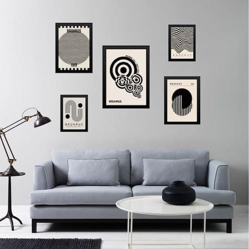 Kit 5 quadros bauhaus preto e branco - com vidro Moldura: madeira branca Informações do produto tire todas as suas dúvidas no descritivo abaixo: decoração para quarto, sala, cozinha, escritório, área gourmet e muito mais. Chega de paredes vazias medidas - kit composto por 5 quadros, sendo 2 quadros com medida 18x24cm, 2 quadros com 24x33cm e 1 quadro com medida 33x45cm. Material do papel - papel fotográfico brilhante de altíssima resolução acabamento - todos os quadros são acompanhados de vidro para proteção da imagem. - moldura em madeira maciça na cor preta ou branca conforme produto escolhido e pendurador . - os quadros são embalados de forma segura com plástico bolha com camada dupla de acordo com o tamanho dos quadros. Garantia - garantia de 3 meses. Meu quadro chegou. Como posso fixá-lo Você precisa apenas de um martelo e um prego, pois os quadros já vão acompanhados de penduradores. Esta é a forma mais indicada. Como posso limpar meu quadro A limpeza é feita como um móvel comum da sua casa. Apenas um pano seco ou espanador são suficientes para tal Ean: 7891849029788
