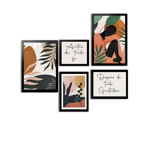 Kit 5 Quadros Decorativos Com Moldura Preta Arte Boho Quadros decorativos fabricados com moldura de madeira de reflorestamento com acabamento laqueado, impressão a laser em papel couché 300g, fundo em madeira. As paredes ganham cor e vida com quadros e painéis decorativos. Escolha os modelos que faltam para deixar sua decoração ainda mais bonita. Na sala, no quarto ou em outros cômodos, as peças coloridas ou em preto e branco garantem mais estilo.
