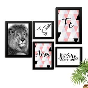 Kit 5 Quadros Decorativos Leao Fé Amor