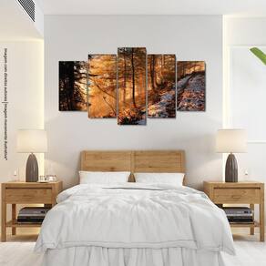 Kit 5 Quadros Decorativos Mosaico Floresta Outono