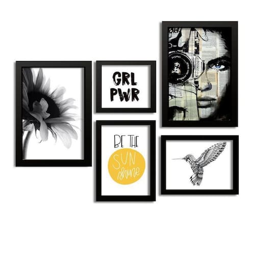 Kit 5 Quadros Decorativos Sunshine Girl Power Quadros decorativos fabricados com moldura de madeira de reflorestamento com acabamento laqueado, impressão a laser em papel couché 300g, fundo em madeira. As paredes ganham cor e vida com quadros e painéis decorativos. Escolha os modelos que faltam para deixar sua decoração ainda mais bonita. Na sala, no quarto ou em outros cômodos, as peças coloridas ou em preto e branco garantem mais estilo.