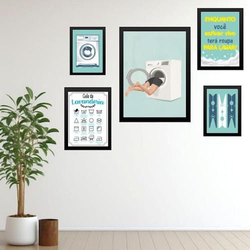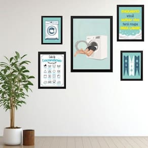 Kit 5 quadros divertidos para lavanderia - com vidro Moldura: madeira branca Informações do produto tire todas as suas dúvidas no descritivo abaixo: decoração para quarto, sala, cozinha, escritório, área gourmet e muito mais. Chega de paredes vazias medidas - kit composto por 5 quadros, sendo 2 quadros com medida 18x24cm, 2 quadros com 24x33cm e 1 quadro com medida 33x45cm. Material do papel - papel fotográfico brilhante de altíssima resolução acabamento - todos os quadros são acompanhados de vidro para proteção da imagem. - moldura em madeira maciça na cor preta ou branca conforme produto escolhido e pendurador . - os quadros são embalados de forma segura com plástico bolha com camada dupla de acordo com o tamanho dos quadros. - de 3 meses. Meu quadro chegou. Como posso fixá-lo Você precisa apenas de um martelo e um prego, pois os quadros já vão acompanhados de penduradores. Esta é a forma mais indicada. Como posso limpar meu quadro A limpeza é feita como um móvel comum da sua casa. Apenas um pano seco ou espanador são suficientes para tal Ean: 7898199649482