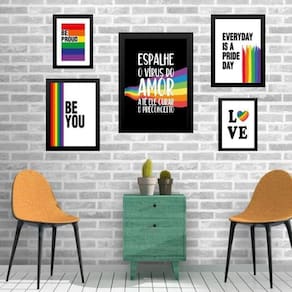 Kit 5 quadros lgbt - vírus do amor - com vidro Moldura: madeira branca Informações do produto tire todas as suas dúvidas no descritivo abaixo: decoração para quarto, sala, cozinha, escritório, área gourmet e muito mais. Chega de paredes vazias medidas - kit composto por 5 quadros, sendo 2 quadros com medida 18x24cm, 2 quadros com 24x33cm e 1 quadro com medida 33x45cm. Material do papel - papel fotográfico brilhante de altíssima resolução acabamento - todos os quadros são acompanhados de vidro para proteção da imagem. - moldura em madeira maciça na cor preta ou branca conforme produto escolhido e pendurador . - os quadros são embalados de forma segura com plástico bolha com camada dupla de acordo com o tamanho dos quadros. Garantia - garantia de 3 meses. Meu quadro chegou. Como posso fixá-lo Você precisa apenas de um martelo e um prego, pois os quadros já vão acompanhados de penduradores. Esta é a forma mais indicada. Como posso limpar meu quadro A limpeza é feita como um móvel comum da sua casa. Apenas um pano seco ou espanador são suficientes para tal Ean: 7891408554416