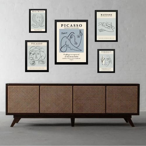 Kit 5 quadros obras matisse picasso azuis Moldura: madeira preta Informações do produto tire todas as suas dúvidas no descritivo abaixo: decoração para quarto, sala, cozinha, escritório, área gourmet e muito mais. Chega de paredes vazias medidas - kit composto por 5 quadros, sendo 2 quadros com medida 18x24cm, 2 quadros com 24x33cm e 1 quadro com medida 33x45cm. Material do papel - papel fotográfico brilhante de altíssima resolução acabamento - todos os quadros são acompanhados de uma película de acetato para proteção da imagem. - os quadros são embalados de forma segura com plástico bolha com camada dupla de acordo com o tamanho dos quadros. Garantia - garantia de 3 meses. Meu quadro chegou. Como posso fixá-lo Você precisa apenas de um martelo e um prego, pois os quadros já vão acompanhados de penduradores. Esta é a forma mais indicada. Caso prefira, você pode utilizar uma fita dupla face neste caso, sugerimos de alta qualidade para evitar que descole e seu quadro caia . Como posso limpar meu quadro A limpeza é feita como um móvel comum da sua casa. Apenas um pano seco ou espanador são suficientes para tal