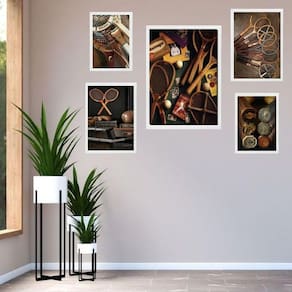 Kit 5 quadros tênis vintage - raquetes - com vidro