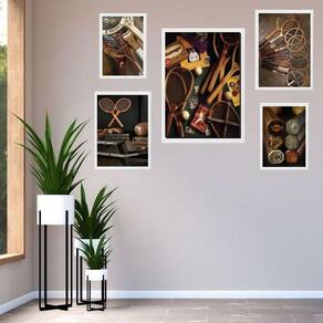 Kit 5 quadros tênis vintage - raquetes - com vidro Moldura: madeira branca Informações do produto tire todas as suas dúvidas no descritivo abaixo: decoração para quarto, sala, cozinha, escritório, área gourmet e muito mais. Chega de paredes vazias medidas - kit composto por 5 quadros, sendo 2 quadros com medida 18x24cm, 2 quadros com 24x33cm e 1 quadro com medida 33x45cm. Material do papel - papel fotográfico brilhante de altíssima resolução acabamento - todos os quadros são acompanhados de vidro para proteção da imagem. - moldura em madeira maciça na cor preta ou branca conforme produto escolhido e pendurador . - os quadros são embalados de forma segura com plástico bolha com camada dupla de acordo com o tamanho dos quadros. - de 3 meses. Meu quadro chegou. Como posso fixá-lo Você precisa apenas de um martelo e um prego, pois os quadros já vão acompanhados de penduradores. Esta é a forma mais indicada. Como posso limpar meu quadro A limpeza é feita como um móvel comum da sua casa. Apenas um pano seco ou espanador são suficientes para tal Marca: Não Informado