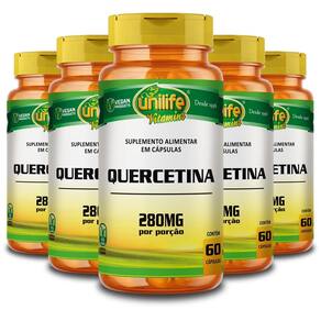 Kit 5 quercetina unilife 60 cápsulas Quercetina é um flavonoide derivado de planta, isolado de cebolas, maçãs, uvas, vegetais folhosos e chás, principalmente do chá verde camélia sinensis . É geralmente conhecido por suas propriedades antioxidantes e anti- inflamatórias. Modo de ingestão: sugere-se a ingestão de 2 cápsulas ao dia. Ingerir com líquido. Ingredientes: quercetina, celulose, antiumectante dióxido de silício. Cápsula: gelatina vegetal e água purificada. Peso total de cada cápsula: 310mg. Livre de lactose. Não contém glúten. Produto vegano. Marca: Não Informado Ean: 7908609548806
