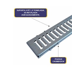 05 Ralo Grelha Linear Com Caixilho em Aço Galvanizado 10x50cm.
