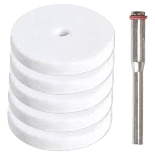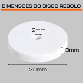 Kit 5 Rebolo Roda Abrasiva 20mm Branca com Haste 3mm para Micro Retíficas Multimarcas Dremax - Marca: Dremax - Referência: REB003-5X - Jogo exclusivo com 5 discos e 1 Suporte - Acompanha 1 Suporte para rebolo com haste de 3mm - Material: Óxido de Alumínio Branco - Diâmetro externo do rebolo: 20mm - Diâmetro do furo do rebolo: 2mm - Espessura do rebolo: 3,2mm - Indicado para desbastes e afiações de peças ou ferramentas - Uso em micro retíficas de qualquer marca com suporte para rebolos - Para uso na maioria dos materiais, incluindo aço inoxidável, peças fundidas, uniões soldadas, rebites e ferrugem - Pode ser usada para diversas aplicações de esmerilhar, como afiar lâminas de ferramentas, remover arestas de peças fundidas de metal, esmerilhar bordas ou pontas afiadas em metal e remover ferrugem - Garantia: 90 dias Marca: Dremax