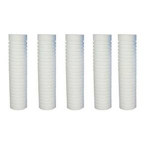 Kit 5 refil filtro caixa dágua ranhurado 9 3/4 1 micra Cor: branco Kit com 5 unidades de refil polipropileno ranhurado 9 3/4 x 2 1/2 1 micra. Elemento filtrante 100% polipropileno fundido de alta performance melt blown . Isento de migração de fibras. Permite altas vazões com pequeno diferencial . Possui densidade graduada, que permite maior capacidade de retenção. Tamanho 9 3/4 x 2 1/2 1 micra Fluxo máximo de água 1000 l/h O cartucho sppf é ideal para água potável e de processo, gêneros alimentícios e bebidas, eletrônicos, químicos, petroquímicos, uso residencial podendo ser instalado no chuveiro, torneira da pia da cozinha, cavalete, caixa d'água, maquina de lavar roupa e uso comercial em geral. Marca: Não Informado