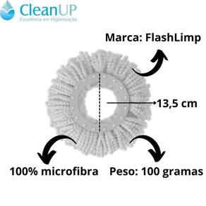 Kit 5 Refil Mop FlashLimp Microfibra Giratório Rodo Mágico O refil para mop giratório é lavável, em máquina de lavar, e 100% microfibra. Ideal para limpezas secas e úmidas. Os fios de microfibra possuem um alto poder de absorção, o que reduz ou até elimina o uso de produtos químicos. Seu material de alta qualidade limpa e absorve toda a sujeira com grande facilidade, apresentando um excelente poder de limpeza. -O que você vai receber- -5-refil de Microfibra para Mop 8 Litros Giratório Flash Limp, Diâmetro de encaixe: 13,5 cm. -especificações- -marca: FlashLimp; -peso: 100 gramas. -diâmetro de encaixe: 13,5 cm; -cor: Branco. -material: 100% microfibra -perguntas frequentes- -O produto é R: Sim, o produto é e vai acompanhado de . -serve no para o Mop Giratório Fit R: Sim, serve. -tags- Refil Mop LimpFlash ; Para ; Microfibra ; ; Giratório Fit ; Limpeza ; Geral ; Plus ; Giratorio ; Com