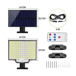 Kit 5 Refletor Solar Luminária De Led 200W + Controle Remoto Kit 5 Refletor Solar Luminária De Led 200W + Controle Remoto Este Kit Contém: 5- Refletor 5- Placa Solar 1- Controle Suporte, Parafusos e buchas para instalação O painel solar acende o corpo ao ar livre é resistente o suficiente e a conexão do fio é selada. Ainda funciona bem em dias chuvosos e frios e verão quente. Equipadas com 106 contas de luz LED altas e uma iluminação de 180 de largura, as luzes solares externas podem fornecer iluminação 3000LM. A bateria de lítio tem uma capacidade maior para fornecer carregamento mais eficiente e iluminação mais duradoura e com controle remoto incluso, você pode controlar a luz mais convenientemente. Quatro modos ajustáveis pressionando o botão na parte de trás da luz solar externa e do controle remoto. 1: Auto sobre na noite, e sensor de movimento fora. 2: Luz forte de 15s quando o movimento é detectado, e pouca luz depois que as pessoas saem. 3: A luz forte de 15s quando o movimento é detectado, e desliga depois que as pessoas saem. 4: Luz piscante à noite. Especificações Tecnicas: Quantidade de LED: 106 Brilho: 3000LM Bateria Capacidade: 3000mAh Nível impermeável: IP65 Cabo: 5M O produto é novo Sim, todos os produtos são novos. Caso o produto não supra minha necessidade posso devolver ou trocar O produto tem Sim, todos os produtos têm . Se ainda houver alguma dúvida estamos a disposição para responder de segunda-feira a sexta-feira das 08:00 às 17:30.