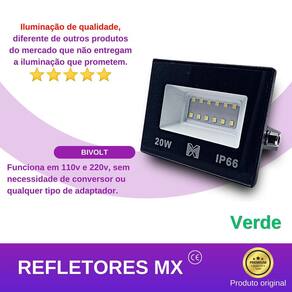 Kit com 5 unidades Transforme seu jardim em um local perfeito para relaxar com amigos e família com o refletor led verde com 20w de potência, você pode ter uma iluminação perfeita para decoração. O refletor possui proteção ip66 e protetor de surto, garantindo a durabilidade e resistência contra a água. E como é bivolt, você não precisa se preocupar com a escolha da tensão certa. Além disso, ao adquirir conosco, você não está apenas garantindo um produto de qualidade, mas também tem acesso a um atendimento personalizado e suporte integral pós-venda. Nossa equipe dedicada, está sempre pronta para garantir sua satisfação e oferecer um serviço completo. Não perca mais momentos de diversão e descanso com amigos e família, escolha o refletor led verde e transforme seu jardim em um local acolhedor e seguro, com o apoio constante que você merece. Ficha técninca: Refletor 20w verde O fio amarelo é para aterramento. Fluxo luminoso: 1500lm Ângulo de abertura: 120 Vida útil: 25.000 horas Potência: 20w Tensão: 100-240 v Frequência: 50/60hz Corrente elétrica: 127 - 220v Fator de potência: maior ou igual 0.50 Temp. De operação: -20c a 40c Índice de proteção: ip66 Temperatura da cor: verde Atenção Antes de conectar a lâmpada, certifique-se de que a corrente elétrica está desligada. Não há necessidade de reatores externos, pois o reator da lâmpada é integrado a base. Após a confirmação e aprovação de compra, você terá acesso a todos os nossos contatos. Será um prazer ajudá-lo em qualquer dúvida que possa vir a ter. Lembrando que poderá efetuar perguntas na página do anúncio antes de efetuar a compra. Marca: Não Informado
