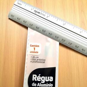 Comprimento: 30 cm Material: Alumínio resistente, que não quebra facilmente Escala dupla: Centímetros e polegadas, facilitando medições em diferentes padrões Design: Firme e leve, ideal para desenhar linhas retas precisas Acabamento: Superfície lisa que proporciona maior conforto ao manusear Quantidade: 5 Unidades
