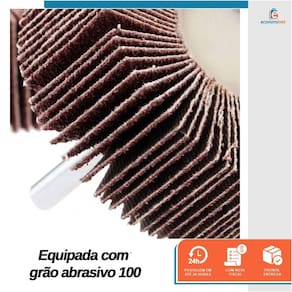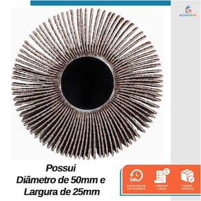 Principais características: Possui um diâmetro de lixa de 50mm e uma largura de 25mm Equipada com grão abrasivo 100 Fabricada com óxido de alumínio O pino de 1/4" (6mm) permite um encaixe fácil em furadeiras Com uma haste de 38mm Suporta uma rotação máxima de 13500RPM Saco plástico com testeira, contendo 5 unidades Ref.: 12019149 Marca: Starfer