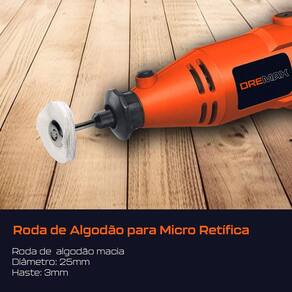 Kit com 5 Rodas de Algodão 25mm com Haste 3mm para Polir com Micro Retíficas Dremax