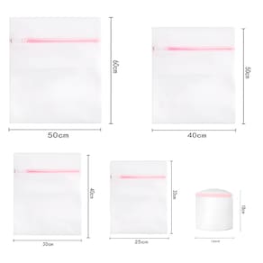 Proteção e durabilidade para suas roupas! Diga adeus às bolinhas, aos fios puxados e aos danos na sua máquina de lavar -Ideal para roupas delicadas, lingeries e peças de diferentes tamanhos. -Possuem um zíper de alta qualidade que se mantém fechado durante todo o ciclo, com proteção extra para não danificar outras roupas ou a máquina. -100% Poliéster, resistente ao desgaste da máquina e de secagem rápida. Especificações Técnicas: - Material: Poliéster - Tamanho GG: 60cm (ALTURA) x 50cm (LARGURA) - Tamanho G: 50cm (ALTURA) x 40cm (LARGURA) - Tamanho M: 40cm (ALTURA) x 30cm (LARGURA) - Tamanho P: 30cm (ALTURA) x 25cm (LARGURA) - Tamanho Redondo: 18cm (ALTURA) x 16cm (LARGURA) - Fechamento: Zíper - 5 sacos Itens Inclusos: - 01x Tamanho GG - 01x Tamanho G - 01x Tamanho M - 01x Tamanho P - 01x Tamanho Redondo