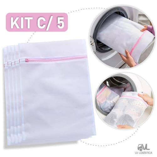 Kit 5 Saquinho de Lavar Roupa Intima Delicada Para Maquina 30x40 Kit Com 5 Sacos telado Para Lavar Roupas Delicadas Com Ziper