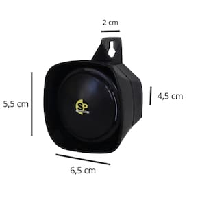 Sirene para sistemas de Alarmes e Cercas Elétricas, alta potência e ligação simples. Marca: Security Parts; Potência: 120Db; Piezoelétrica; Alimentação 12v 0,24; Cor: Preto; Monotonal; Suporte de fixação incorporado;