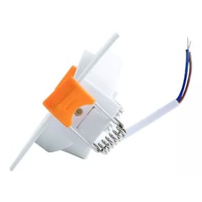 PRODUTO COMPLETO JÁ COM DRIVER INCLUSO. É SÓ INSTALAR.A PARTE NA COR LARANJA É A TRAVA QUE NÃO FICA VISÍVEL APÓS A INSTALAÇÃO. Segure o soquete saindo do furo e encaixe os pinos da lâmpada dentro, fixando o spot de luz na rede elétrica; Empurre todos os fios para dentro do buraco no gesso e encaixe o spot dentro do furo Dimensões: 65 x 65 mm