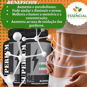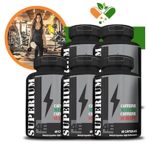 Kit 5 Suplemento Superium Matcha+Guarana 500mg 60 Cápsulas Superium Caffeine Matcha+Guarana 500mg 180 Cápsulas BenefíciosAumenta o metabolismo Pode ajudar a diminuir o stressMelhora o humor a memória e a concentraçãoAumenta as taxa de oxidação das gorduras Como TomarTomar 2 Cápsulas duas vezes ao dia.ComposiçãoGuaraná em pó e Matcha camellia sinensis . Contra IndicaçãoPessoas hipertensas, hipertireoidismo e com problemas de insônia. produto isento de registro conforme rdc Anvisa 27 de agosto de 2010 Marca: 4Elementos