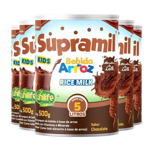 Kit 5 Supramil Bebida de Arroz Kids Chocolate Unilife 500g A Bebida de Arroz é uma ótima alternativa ao leite comum, especialmente para pessoas com intolerância alimentar. Rica em vitaminas, fibras e minerais. Indicado para pelos leites vegetais enriquecidos com cálcio e vitaminas . O leite de arroz é um dos melhores substitutos, principalmente a sua versão em pó, já que, além de enriquecida, também pode substituir o leite em receitas diversas, doces ou salgadas. Benefícios É enriquecida com vitaminas vitamina C, vitamina D2 e vitamina k fibras e minerais como o cálcio. Modo de usar Adicione 2 colheres de sopa em 200ml de água. Mexer bem. Ingredientes Arroz, polidextrose, carbonato de cálcio, menaquinona MK-7 vitamina K2 , ácido ascórbico vitamina C , ergocalciferol, aroma natural de baunilha, antiumectante fosfato tricálcico, edulcorante sucralose, edulcorantes naturais, glicosídeos de steviol e taumatina, sal marinho. Alergênicos NÃO CONTÉM GLÚTEN. Código Anvisa Produto autorizado para comercialização em todo o território nacional através da RDC 719/2022 da ANVISA. AFE do MS 6.02234-1 Marca: Não Informado