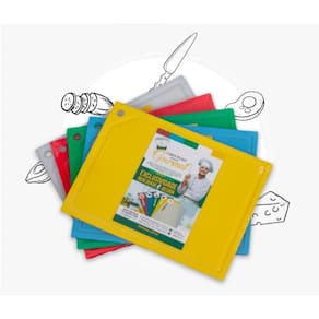 Kit 5 Tábuas De Corte Polietileno Chapa Pead 08X300X500MmFabricadas em plástico de alta qualidade, o PEAD (polietileno) é um material atóxico, aprovado e orientado pela Vigilância Sanitária (ANVISA) pra utilização em cozinhas residenciais ou profissionais, devido ao desempenho e facilidades do produto, aliado a segurança e manuseio dos alimentos. As diversas cores sugerem uma tábua para cada tipo de alimento, seguindo as normas internacionais de padrão de qualidade, evitando assim a contaminação cruzada. Com furo e acabamentoAcompanha suporte para mesaCor: Branco, Vermelho, Verde, Amarelo e Azul