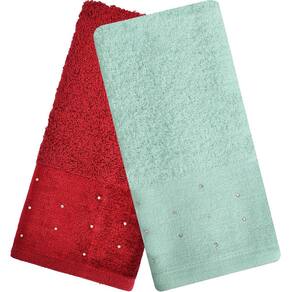 Kit 5 Toalha Lavabo Cristal Natalina 30x50cm Burgundy/Mar Mediterrâneo -