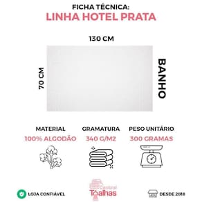 Características do produto Medidas: 70cm x 130cm Peso: 300 Gramas Gramatura: 340 g/m2 Material: 100% Algodão Modelo: Profissional Marca: Central Toalhas Garantia: Contra Defeitos de Fabricação