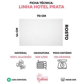 Características do produto Medidas: 44cm x 70cm Peso: 110 Gramas Gramatura: 350 g/m2 Material: 100% Algodão Modelo: Marca: Central Toalhas Garantia: Contra de Fabricação