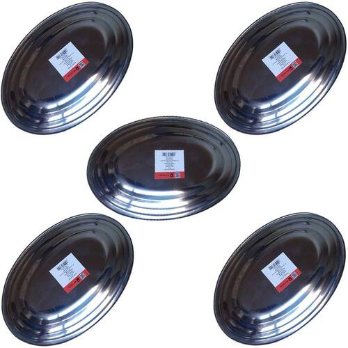 Kit contendo 5 Bandejas Ovais em Inox medindo 26 x 19 x 2 cm