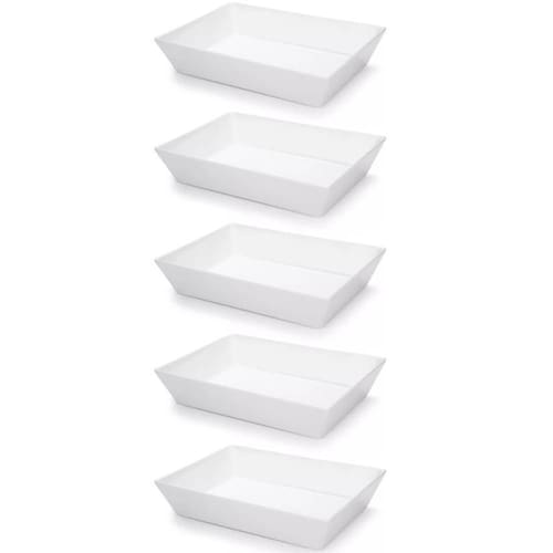 Kit 5 Travessas Retangulares 2,2L Brancas Salada Sobremesa Petisco Cozinha Restaurantes Coza.