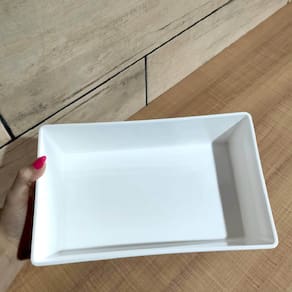 Dimensões de cada travessa retangular: 26,5cm (C) x 16cm (L) x 7cm (A);