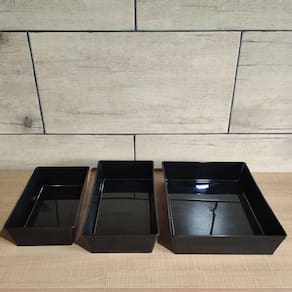 Essas travessas retangulares pretas são uma ótima opção para compor sua mesa. Por possuírem design diferenciado e tamanho grande, podem ser utilizadas para servir diversos alimentos, como saladas, petiscos, risotos, sobremesas, entre outros. Esse kit de 5 bandejas para servir a mesa conta com peças robustas, compatíveis com microondas, freezer e lava-louças, tornando sua rotina ainda mais prática. Garanta qualidade e funcionalidade servindo os alimentos nas travessas retangulares Coza. Ean: 7798138563193