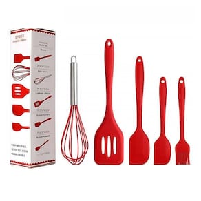 Kit 5 unidades utensílios de cozinha silicone com fue Cor: vermelho Utensílios de cozinha silicone com fue - kit c 5un