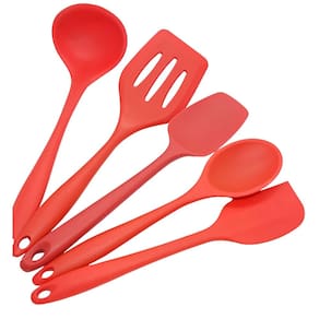Ideais para proteger suas panelas antiaderentes de arranhões, os talheres que compõem esse kit são fabricados em material de silicone e nylon de ótima qualidade, também são resistentes a altas temperaturas e livres de BPA. – Fácil de limpar: podem ser lavados na máquina de lavar a louça – Duráveis, flexíveis, não se deformam – Não riscam a panela – Possuem furo para pendurar– Material: Silicone– Cor: Vermelho Contém: 1 Concha (28,5cm x 8cm) 1 Colher (27cm x 6cm) 1 Colher reta (28cm x 6cm) 1 Espátula vazada (29cm x 8,5cm)1 Espátula pão duro (27cm x 5cm)