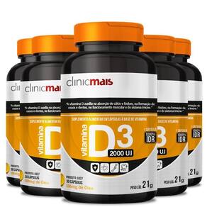 Kit 5 vitamina d3 2000 u.I 500mg clinicmais 30 cápsulas ingredientes: vitamina d3 colecalciferol . Veículo: óleo de girassol. Composição da cápsula: gelatina, umectante glicerina. não contém glúten. Recomendações de uso Indicação: indivíduos com idade = 19 anos. Sugestão de consumo: ingerir 1 cápsula ao dia. Este produto não é um . Não exceder a recomendação diária de consumo indicada na embalagem. Mantenha fora do alcance de crianças. Marca: Não Informado Ean: 7908609501450