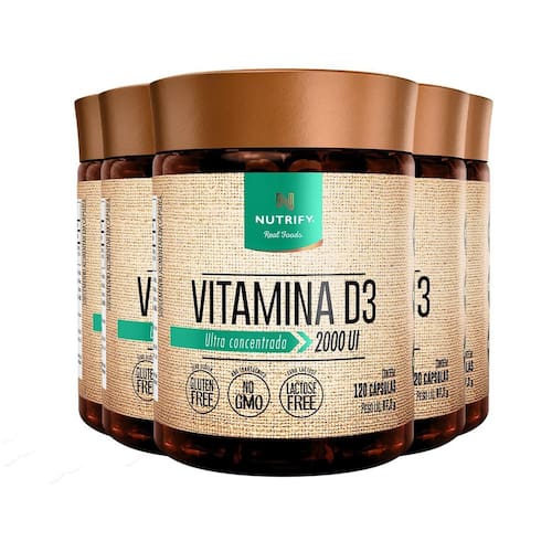 Kit 5 vitamin d3 2000 ui nutrify 120 cápsulas Benefícios: saúde cardiovascular e cerebral em cápsulas ultra concentradas. Vitamina d3 nutrify reúne a forma ativa da vitamina e os triglicerídeos de cadeia média, resultando em formulação de elevada absorção. Vitamina d3 nutrify fornece 50 mcg de colecalciferol. A vitamina d auxilia na formação de ossos e dentes. A vitamina d auxilia na absorção de cálcio e fósforo. A vitamina d auxilia no funcionamento do sistema imune. A vitamina d auxilia no funcionamento muscular. A vitamina d auxilia na manutenção de níveis de cálcio no sangue. A vitamina d auxilia no processo de divisão celular. Nutrify valoriza a origem de cada ingrediente, respeita a integridade de suas fontes naturais e dos envolvidos em sua produção. É assim que criamos produtos saudáveis e saborosos, que fazem bem para as pessoas e para o planeta. Acreditamos que nutrir corpo e mente de modo saudável nos torna capazes de alimentar o mundo com atitudes positivas. Ingredientes: triglicerídeos de cadeia média, vitamina d3 colecalciferol . Cápsula: água purificada, geleificante gelatina e umectante glicerina. Lérgicos: pode conter peixe e soja. Não contém glúten. Este produto não é um . Não exceder a recomendação diária de consumo indicada na embalagem. Mantenha fora do alcance de crianças. Este produto é recomendado para adultos a partir de 19 anos Apresentação: embalagem disponível: pote contendo suplemento em cápsulas. Contém 120 cápsulas. Peso lí. 67,2 g produto classificado como: suplemento alimentar em cápsula. Marca: Não Informado Ean: 7908609545324